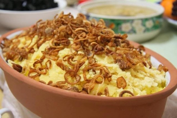 Nhưng dân dã nhất vẫn là món xôi vò ăn với chè đường, hay chè hoa cau. Chén chè trong veo, trên thả vào hột đậu xanh bùi bùi, ăn kèm đĩa xôi vò thơm phưng phức, ngát hương hoa bưởi sao mà ngây ngất thế.